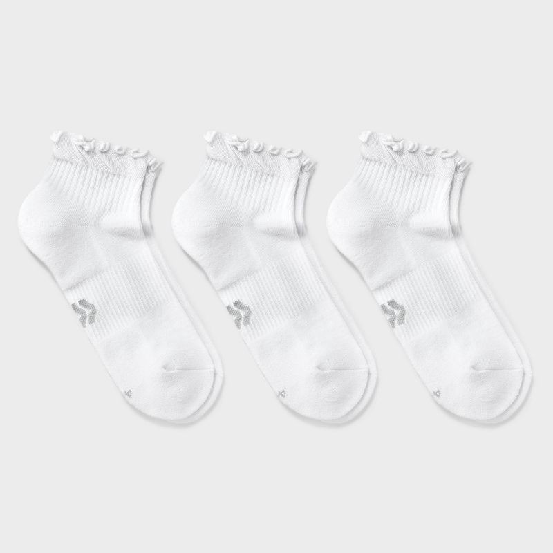 Women's Cushioned Ruffle 3pk Ankle Socks - All In Motion™ White 4-10: Arch Support, Knit Midweight