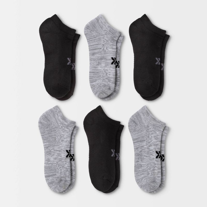 Women's Extended Size Cushioned 6pk Low Cut Socks - All In Motion™ Heather Gray/Black 8-12: Moisture Wicking, Arch Support