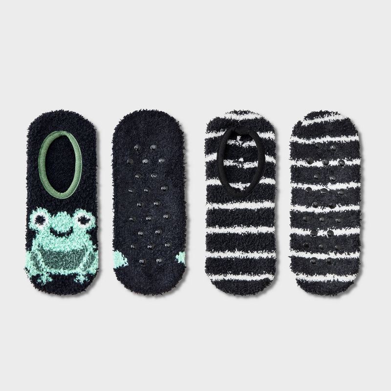 Step into comfort with this Women's Frog 2pk Cozy Liner Socks - Black/Green/White 4-10. Designed for adults, these socks fit sizes 4-10 and are crafted from a lightweight knit fabric blend of polyeste…