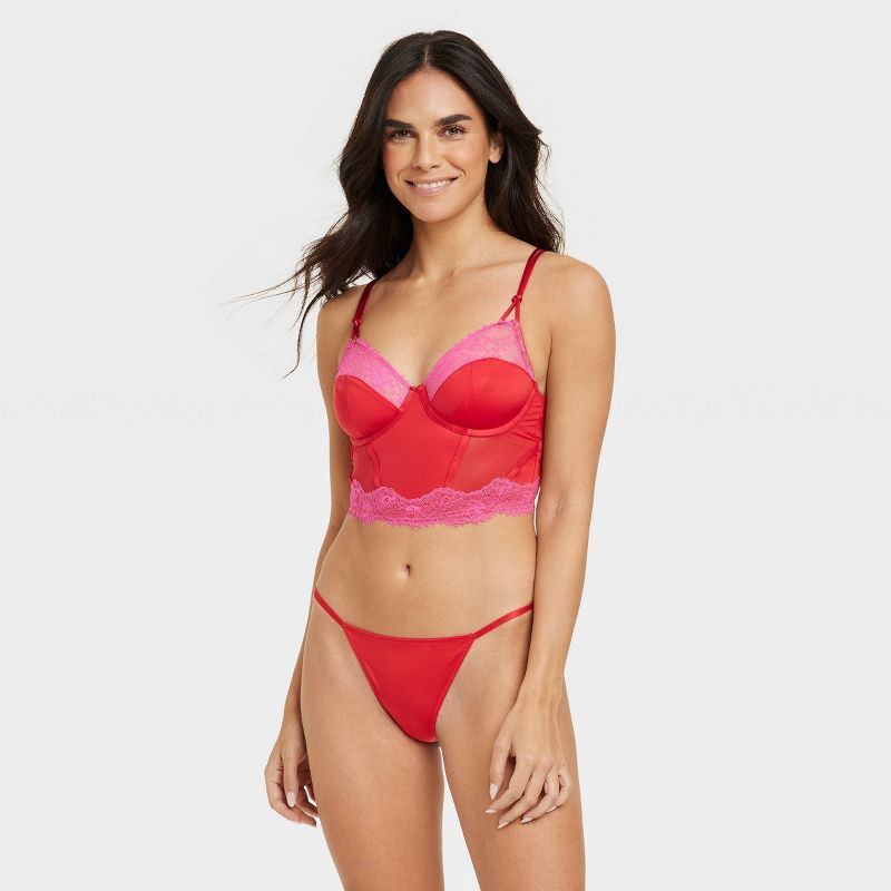 Women's Lace Back Tanga Lingerie Underwear - Auden Red/Pink S