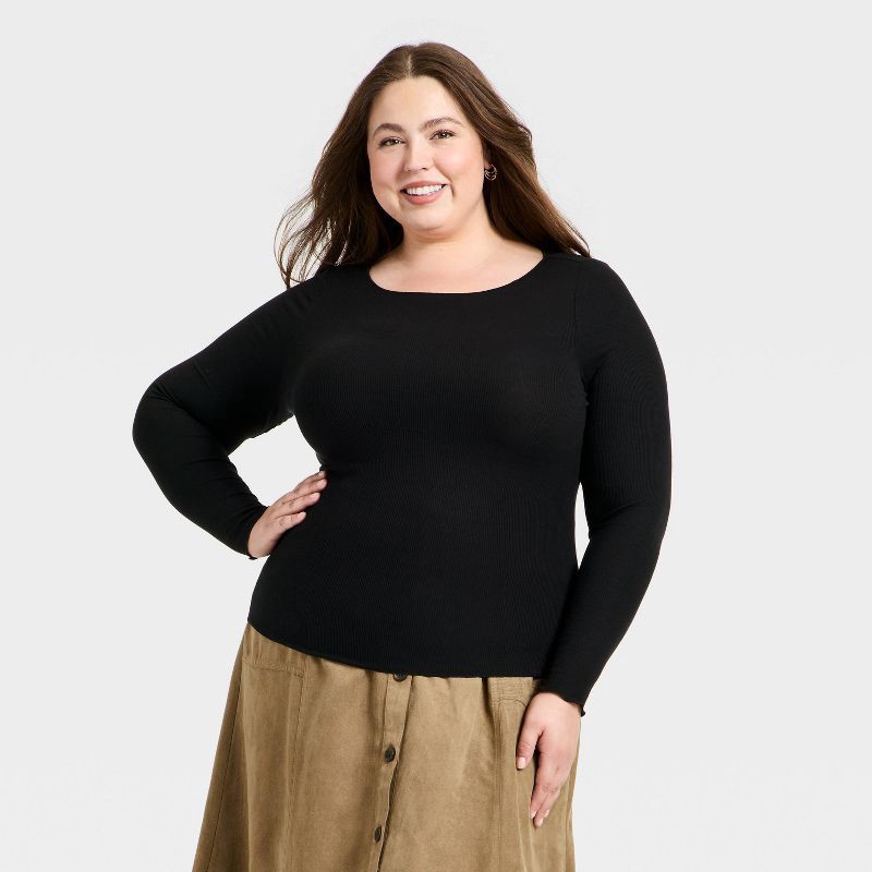 Stay effortlessly stylish in this Long-Sleeve Blouse from Universal Thread™. Designed in a ribbed fabric blend of rayon and spandex, it offers a comfortable stretch and a flattering drape that moves w…