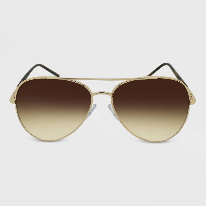 Women's Metal Aviator Sunglasses - Wild Fable™ Gold: Hinged Temple, Adjustable Nose Pads, UV Protection
