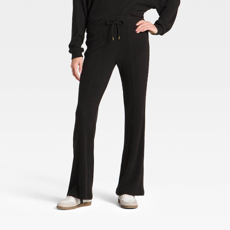 Stay comfy and casual with these Mid-Rise Ribbed Flare Pants from Universal Thread™. Made from a blend of rayon, recycled polyester, nylon and spandex, these fleece pants offer all-day comfort. The mi…