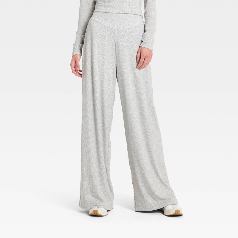 Women's Rib-Knit High-Rise Wide Leg Pants - All In Motion™ Heathered Gray S