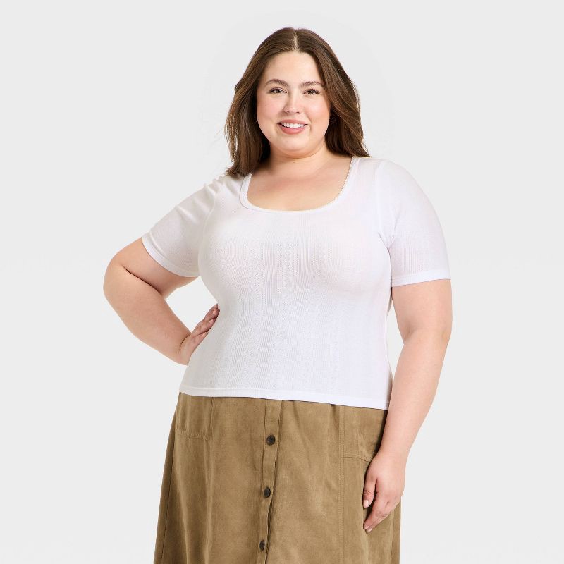 Add an easygoing touch to your everyday wardrobe with this Short-Sleeve Scoop-Neck Pointelle Blouse from Universal Thread™. Made from recycled polyester-, rayon- and spandex-blend pointelle fabric, th…