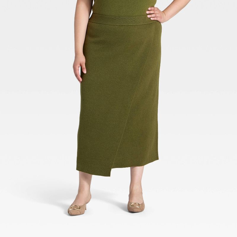 Women's Wrap Column Midi Skirt - A New Day™ Olive XXL