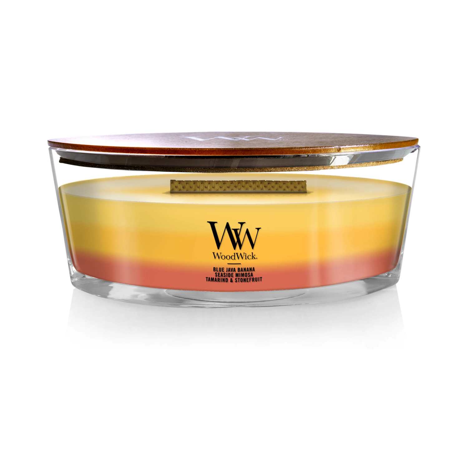 Blue java banana. Seaside mimosa. Tamarind & stone fruit Trilogy. Crackles as it burns. WoodWick is the number one premium wooden wick candle sold in the USA. Creates the soothing sound of a crackling…