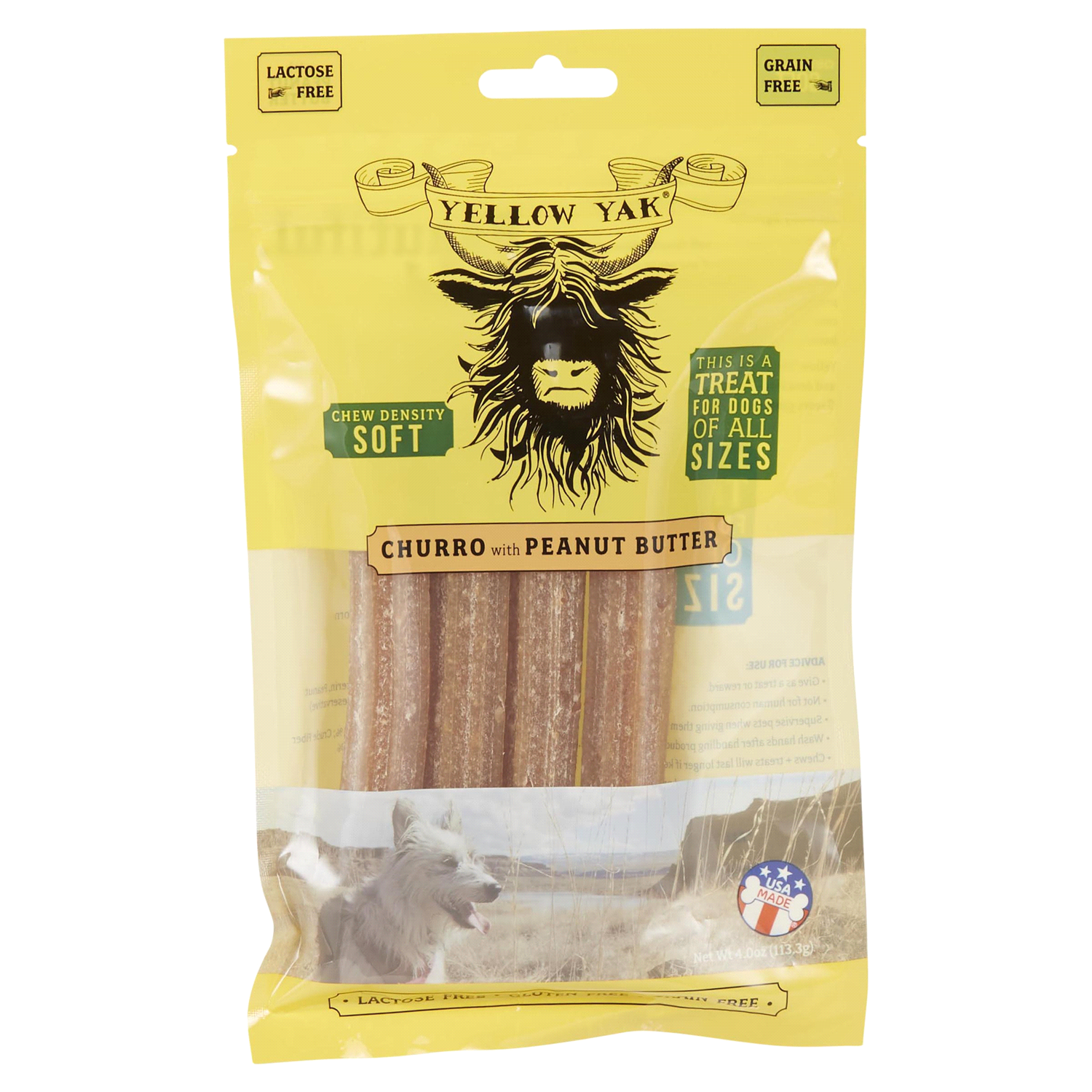 Yellow Yak Churro Peanut Butter, our softest density chew, is the perfect option for easy going chewers. Its unique churro shape gets between teeth to scrub and scrape for cleaning during chew time. T…