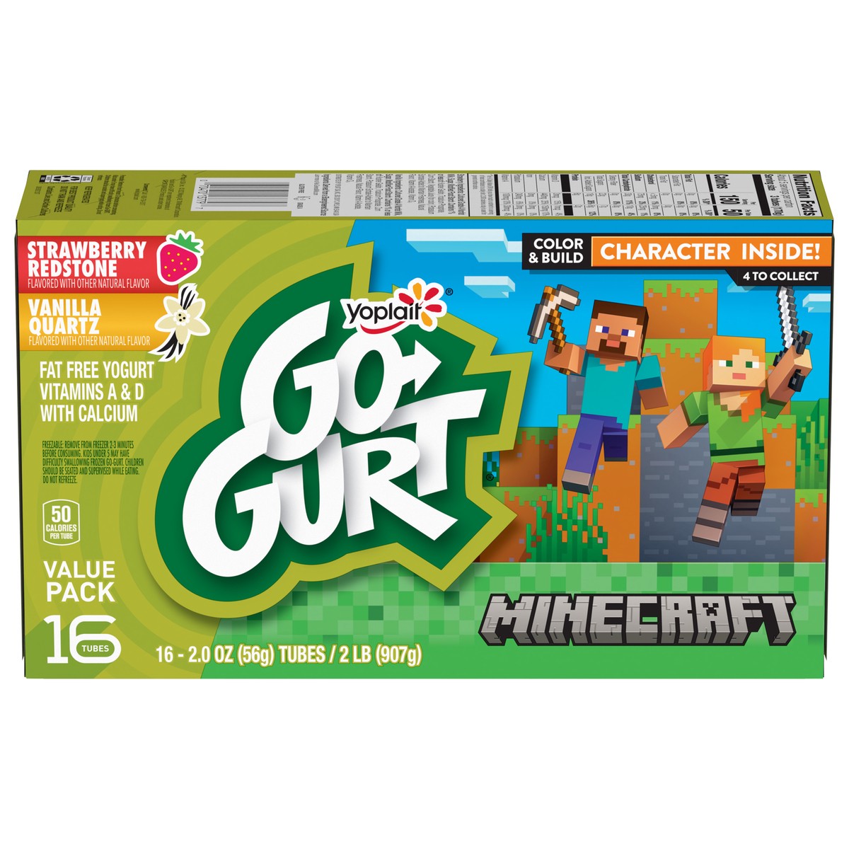 Yoplait Go-GURT Minecraft Strawberry Redstone and Vanilla Quartz Kids Fat Free Yogurt Variety Pack, Gluten Free, 2 oz Yogurt Tubes (16 Count)