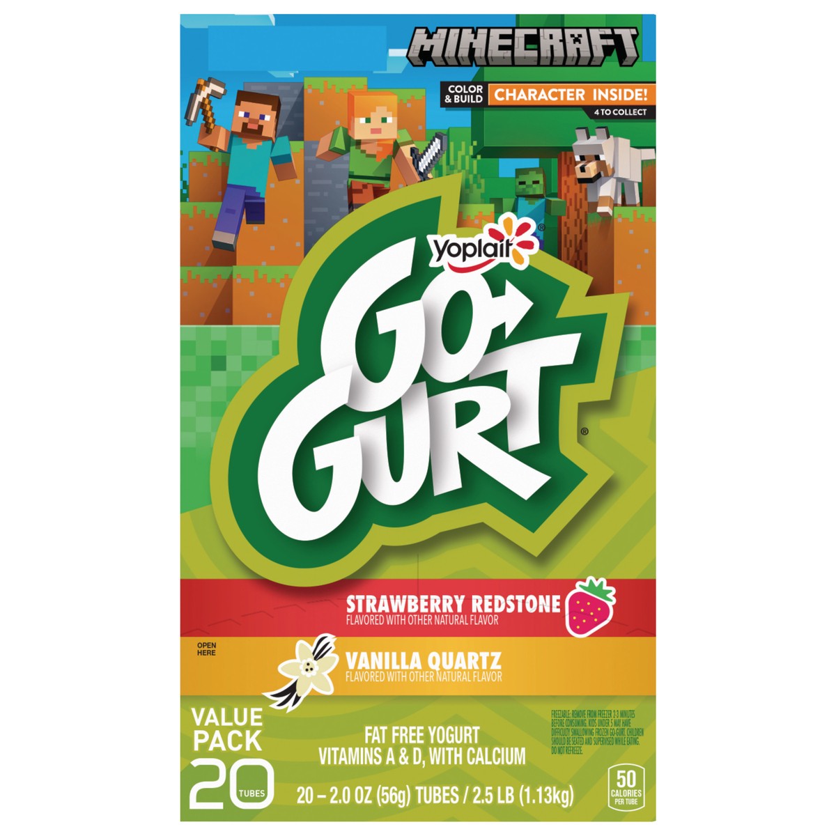 Enjoy fun and delicious taste adventures with Go-GURT Minecraft Strawberry Redstone and Vanilla Quartz Kids Fat Free Yogurt Tubes. The easy to open kids yogurt tubes are a convenient on the go snack o…