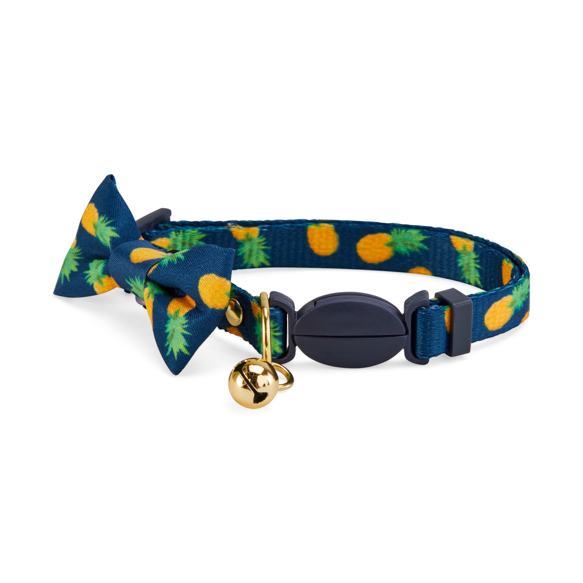 YOULY Navy Pineapple Print Breakaway Bow Tie Cat Collar