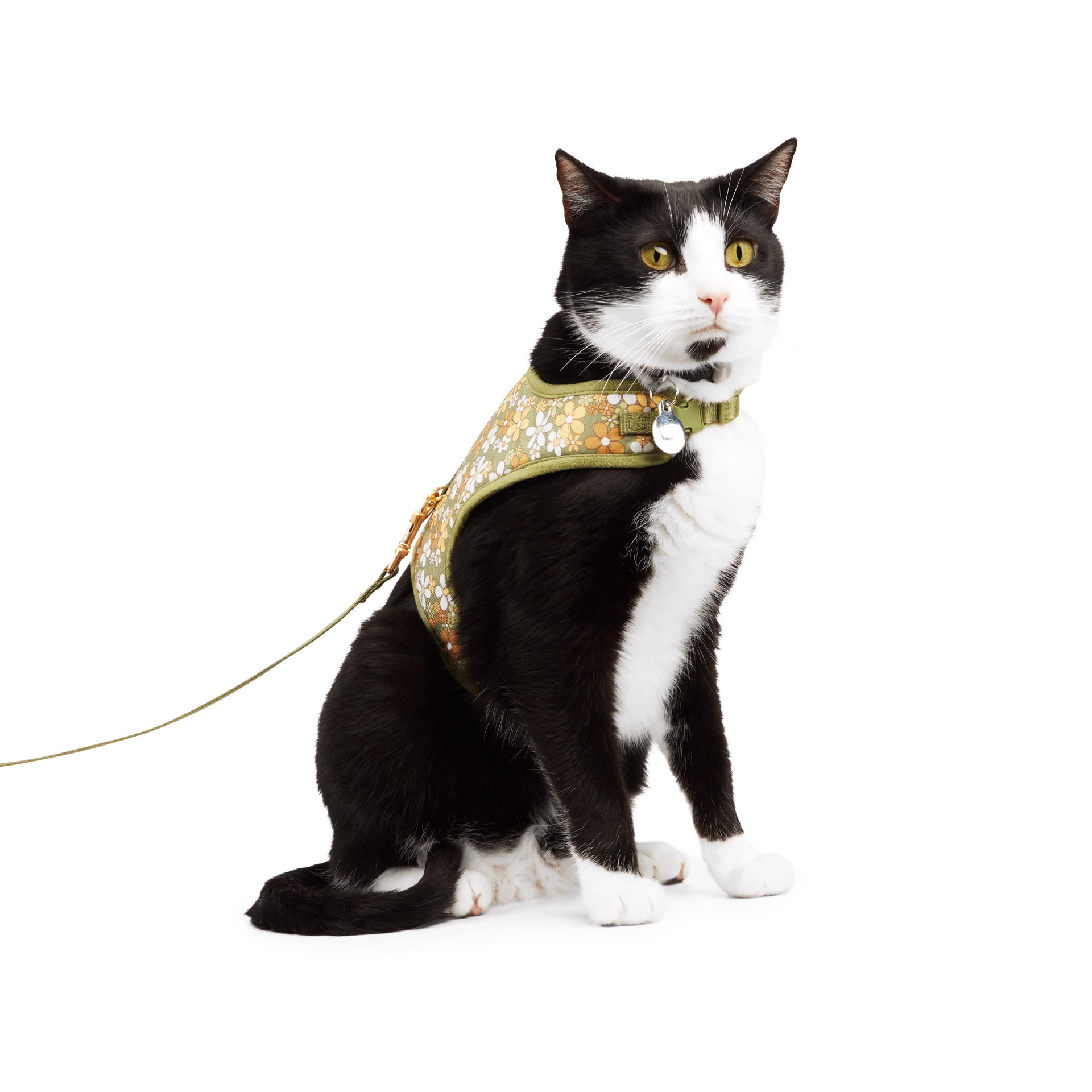 slide 1 of 1, YOULY Retro Floral Cat Harness Set, Small/Medium, Sm-Med