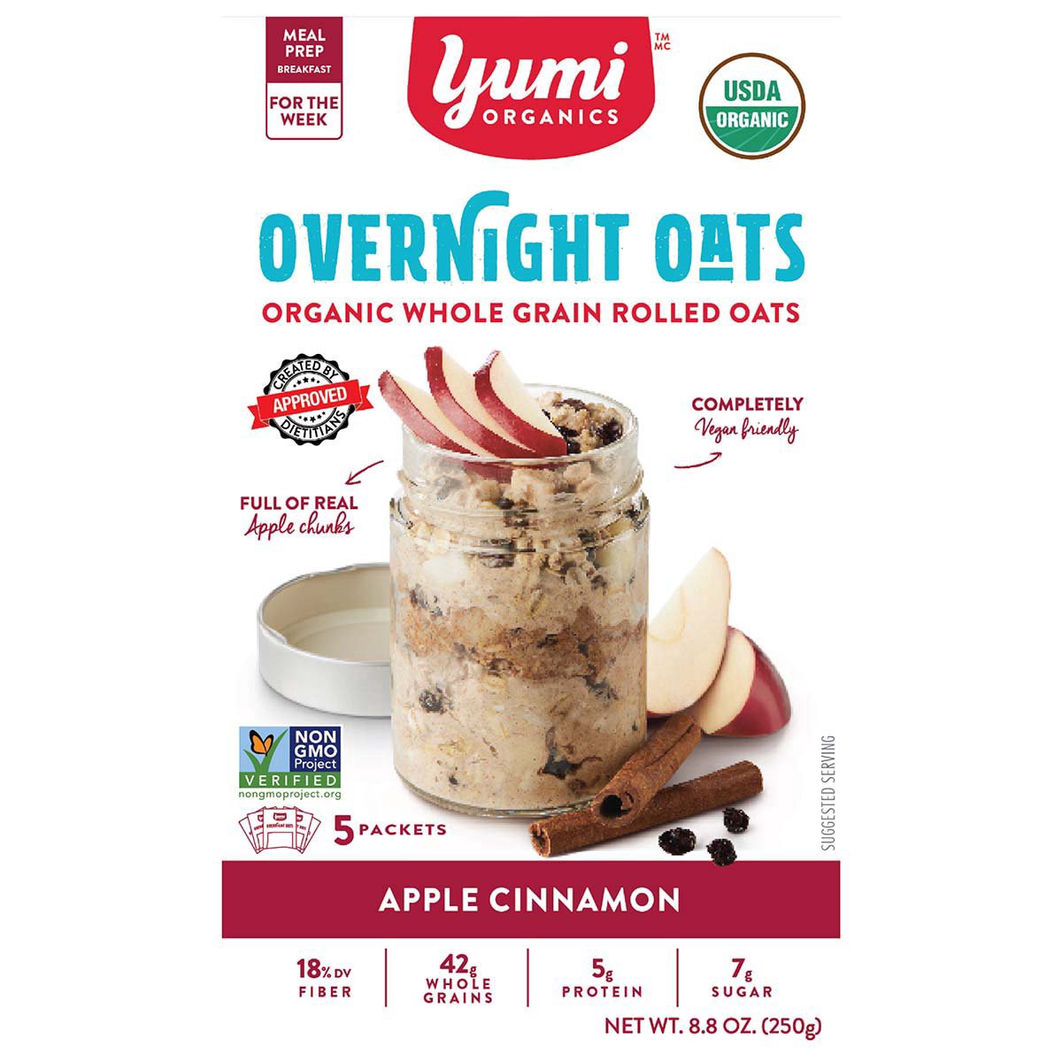 Yumi Organics Organic Whole Grain Rolled Apple Cinnamon Overnight Oats 8.8 oz
