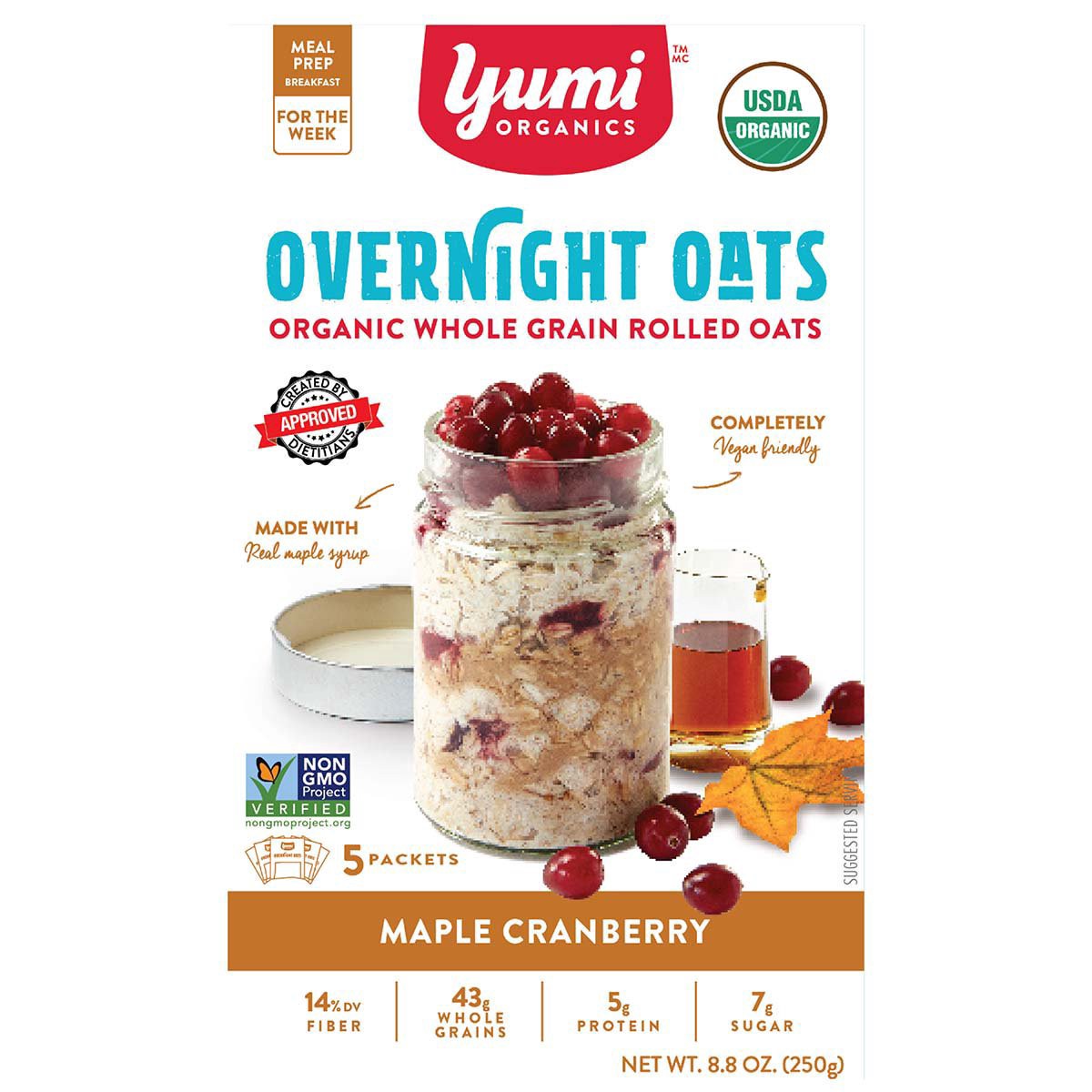 Yumi Organics Organic Whole Grain Rolled Maple Cranberry Overnight Oats 8.8 oz