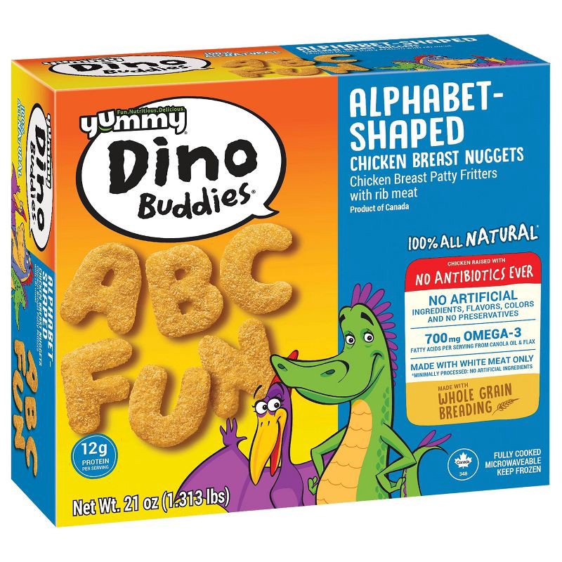 AlphaBuddies are F-U-N!!! Letter Shaped Chicken Breast Nuggets. Kids will enjoy this Whole Grain Chicken Breast Nugget at every meal, snack time, or any time. Delivers 630mg of Omega3 with each servin…