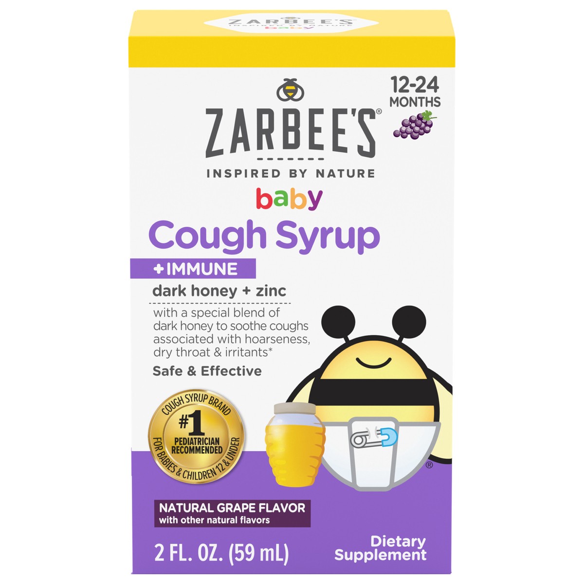 Zarbee's Naturals Baby Cough Syrup + Immune with Dark Honey + Zinc, Natural Grape Flavor, 2 Fl. Oz