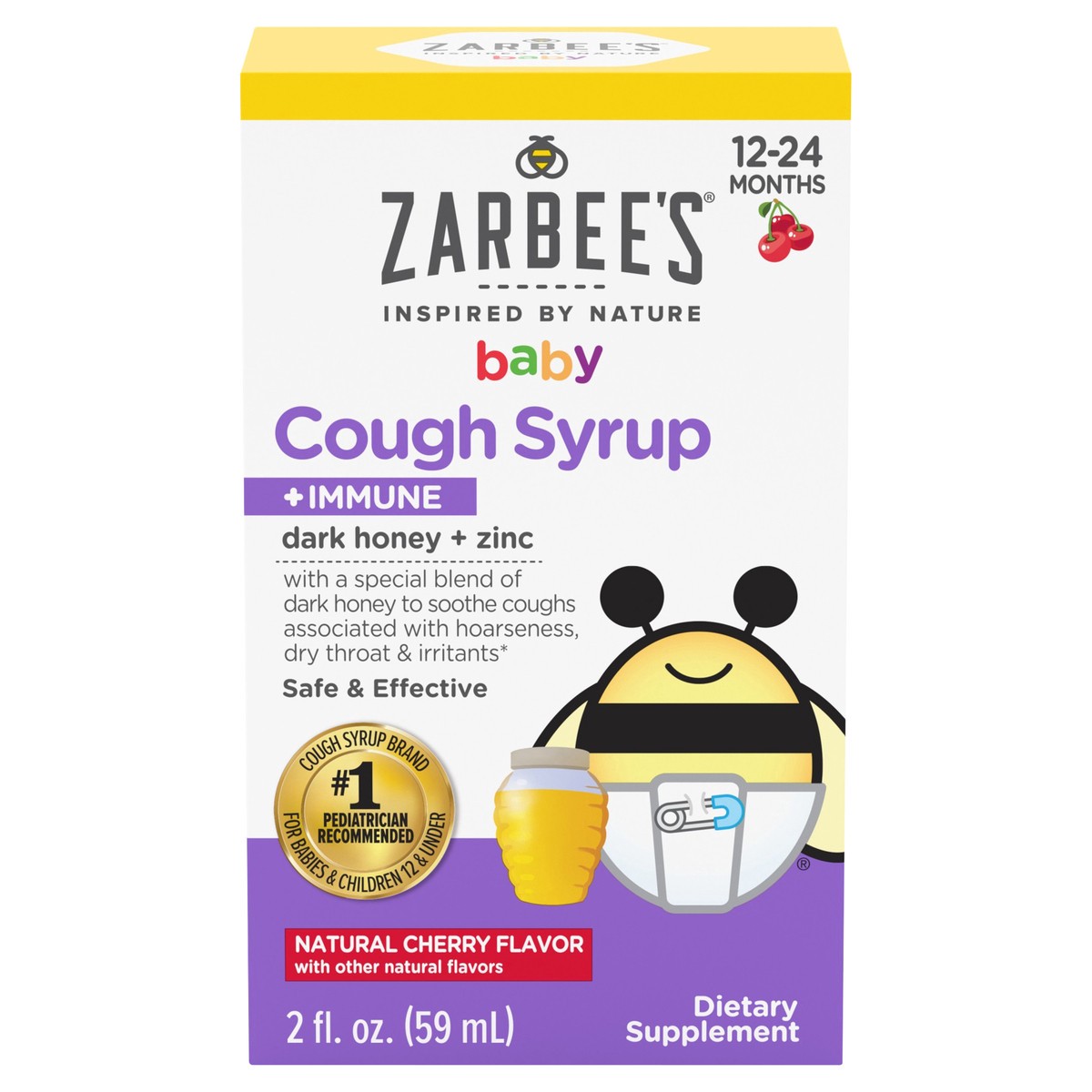 Zarbee's Naturals Baby Cough Syrup + Immune with Honey & Zinc, Natural Cherry Flavor, 2 Fl Oz