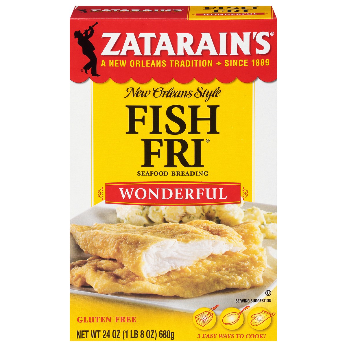 Zatarain's Wonderful Fish Fri delivers a tasty, coating to seafood or veggies. This all-corn, breading mix brings the rich traditions of Big Easy cooking straight to your family’s table. Wonderful Fis…