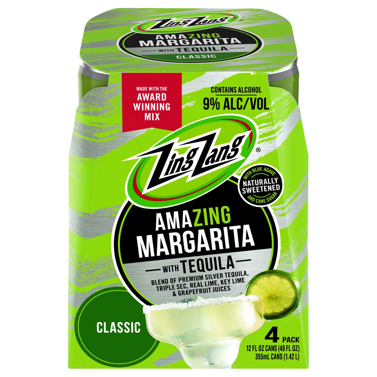 Zing Zang Amazing Classic Margarita Cocktail with Tequila, Alcoholic Ready-to-Drink Canned Cocktails, 12 Fl Oz Can (Pack of 4)