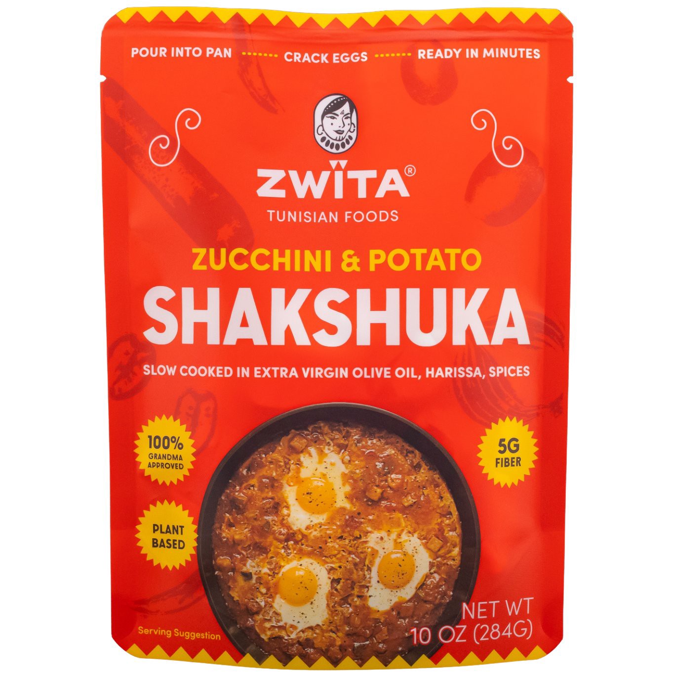 This ready-to-eat shakshuka is made by slow-cooking a carefully selected mix of zucchini, potatoes, onions, peppers, and tomatoes in extra virgin olive oil, Zwïta's traditional harissa paste, and smok…